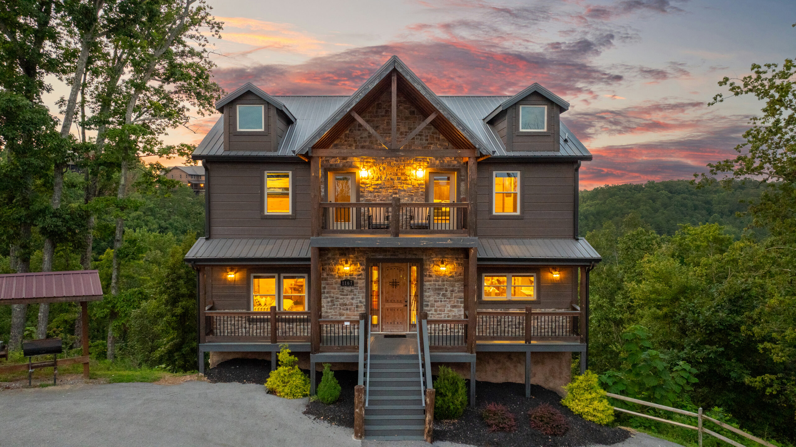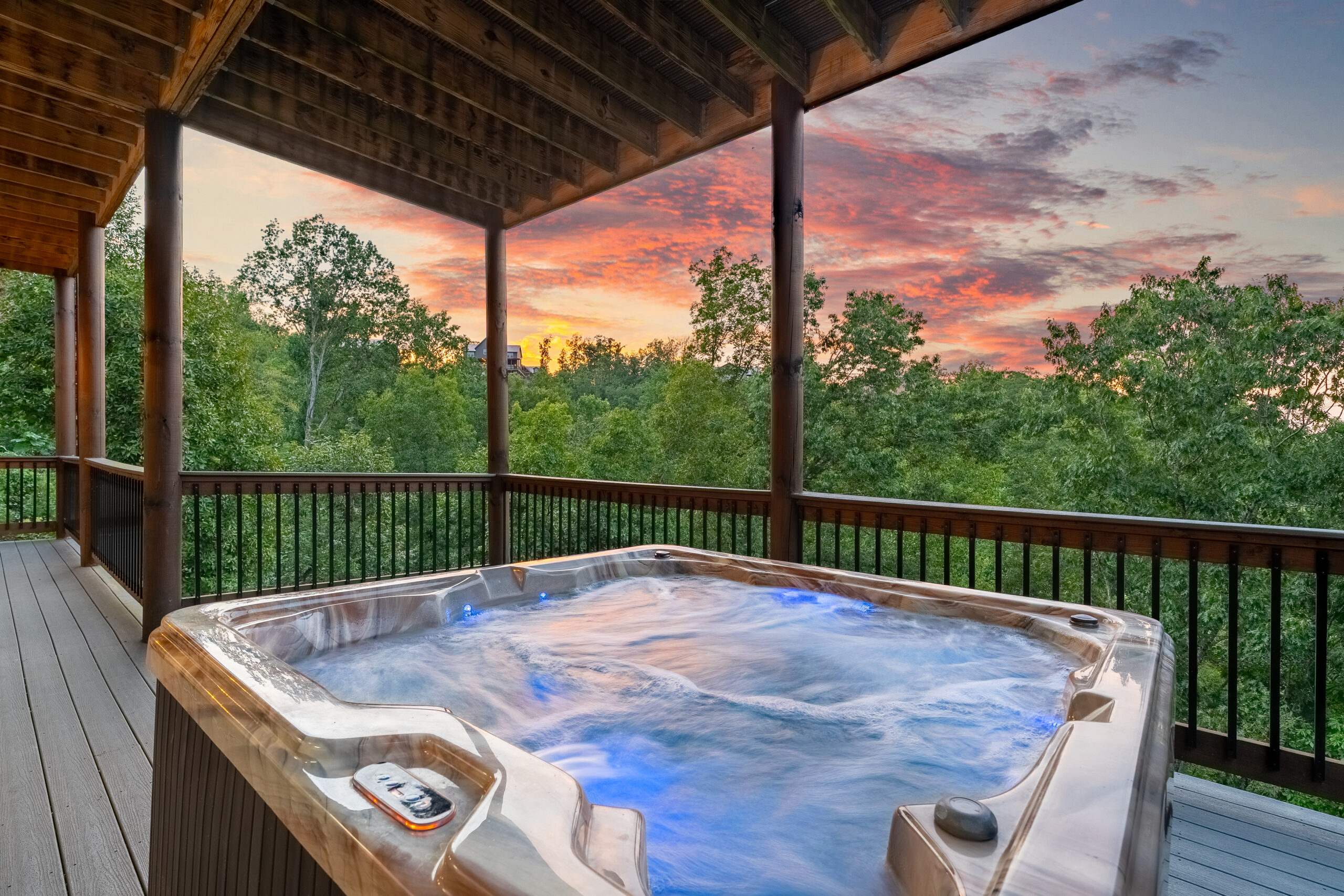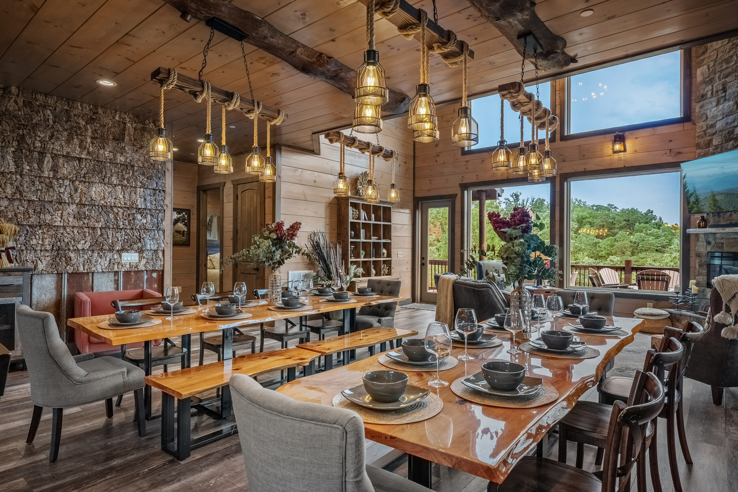 Welcome to Solara Ridge Cabin, a 4,370 sq ft luxury retreat nestled in the Tennessee mountains. With 6 bedrooms, 8 bathrooms, and space for large groups, this cabin blends mountain charm with modern comfort, offering panoramic ridge views and endless amenities. Step onto the expansive decks to sip your morning coffee as the sun rises, or gather around the firepit as the stars come out. Whether it’s a family getaway, friends’ retreat, or celebration, Solara Ridge Cabin offers the perfect balance of adventure and relaxation.