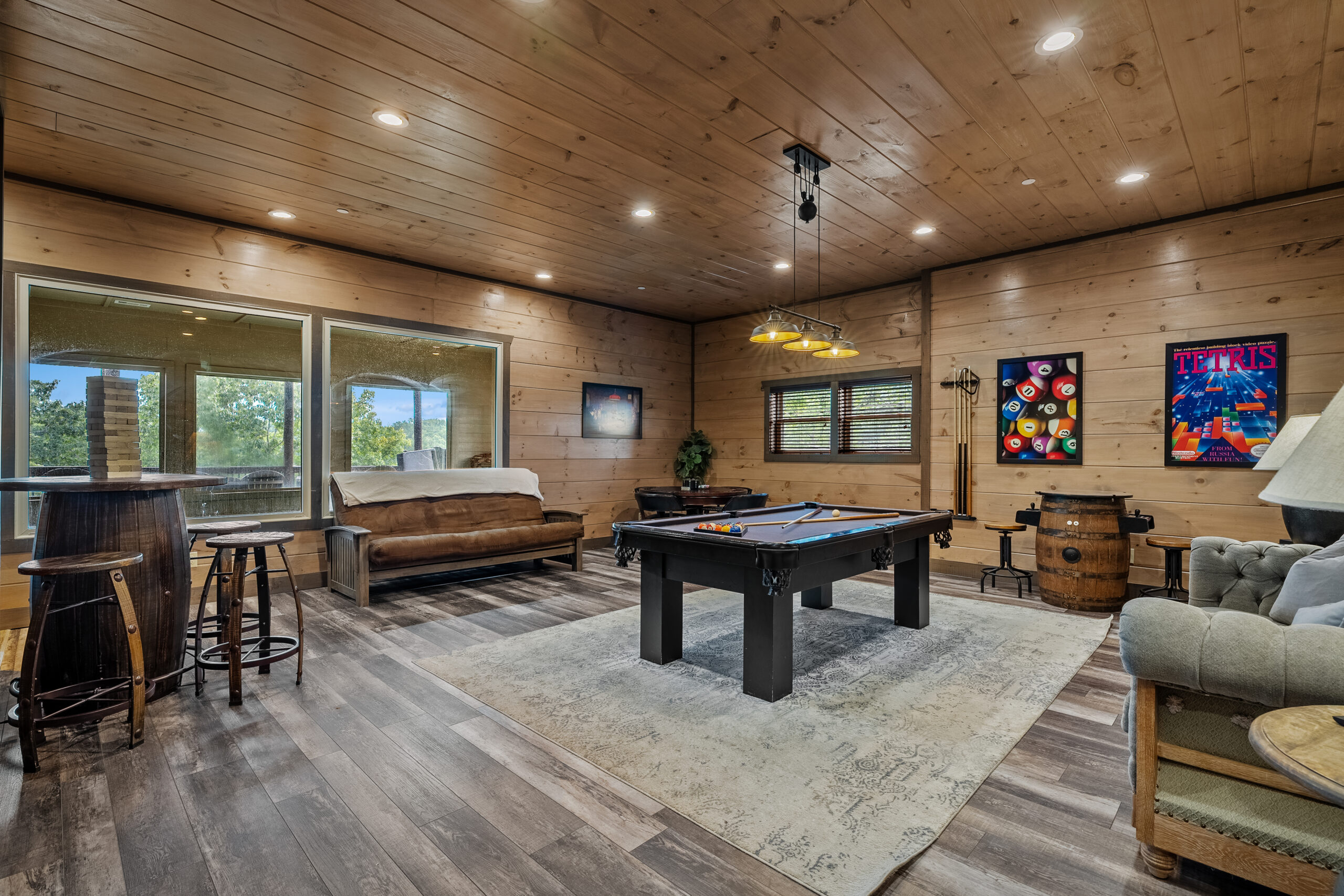 - Game room with billiards, poker table, and classic touches